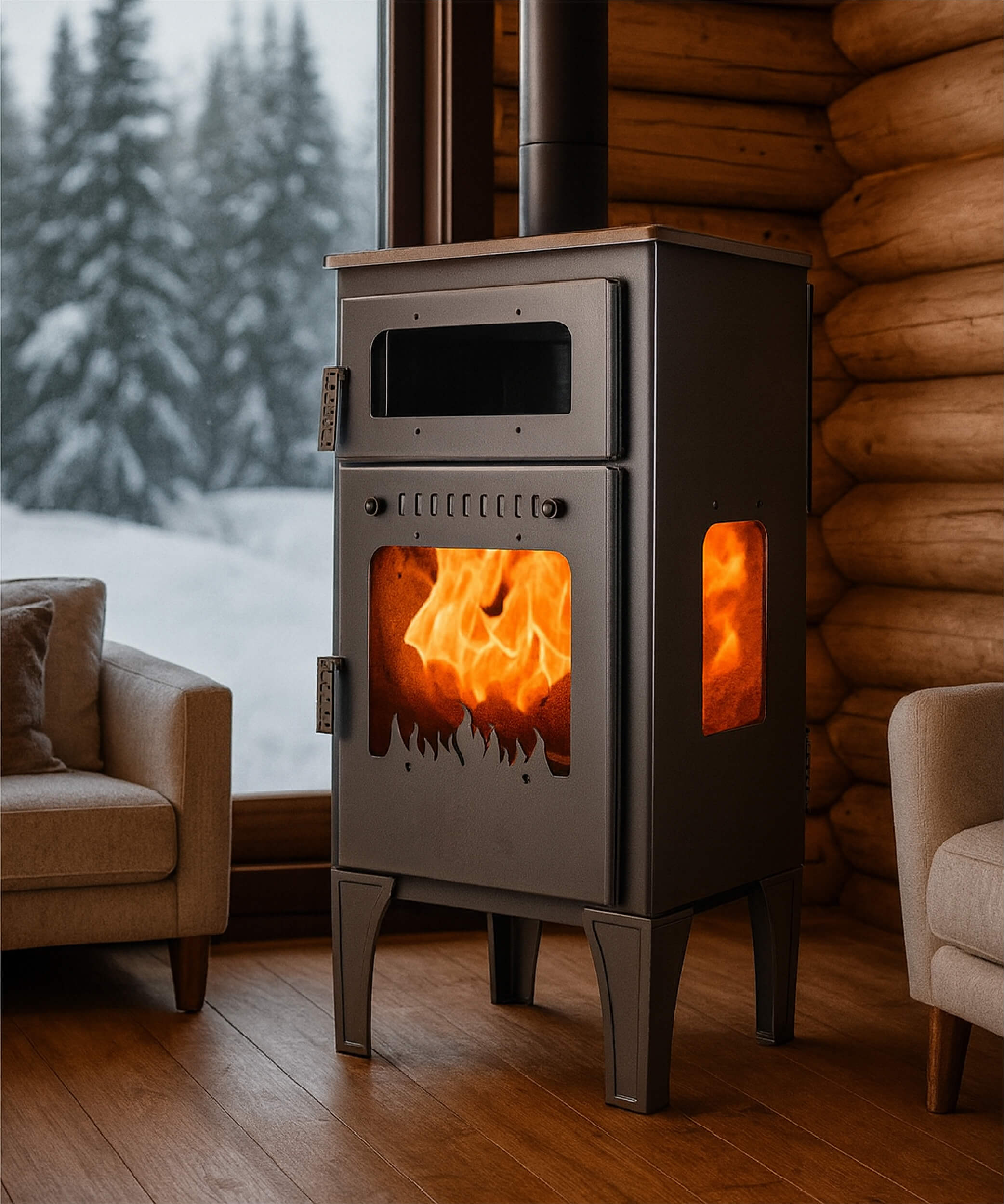 Fırınlı 3 Camlı Pelet Sobası